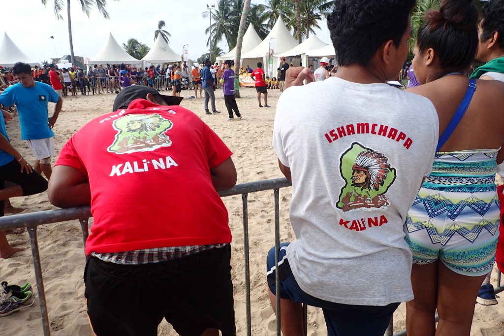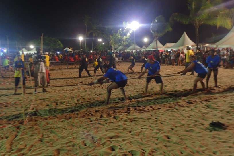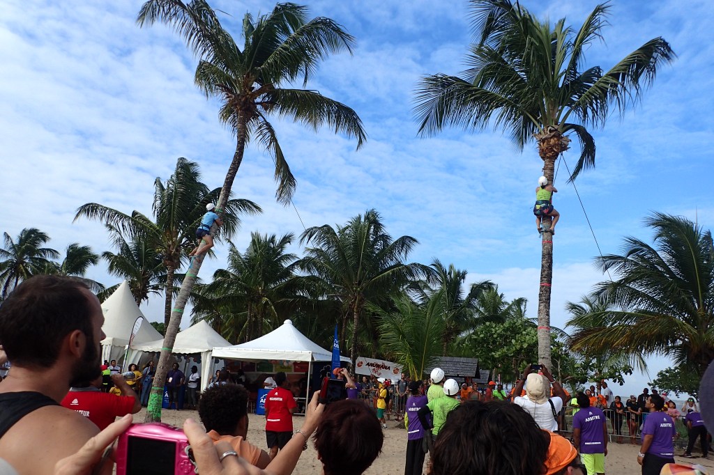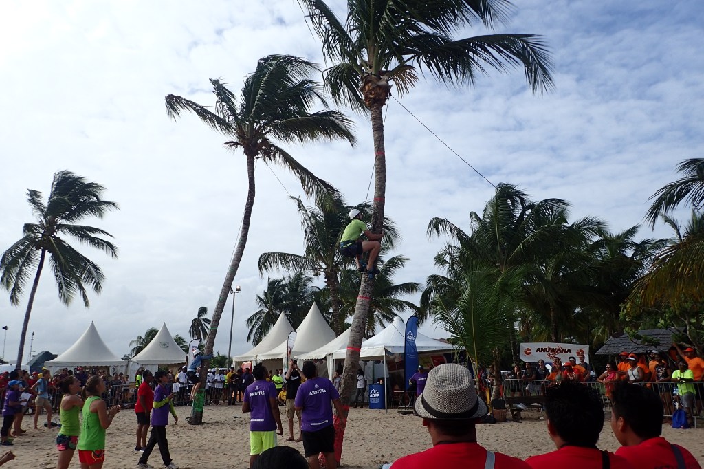 Samedi matin, départ à 8h pour Awala. Les jeux ont débutés à 6h30 par l’épreuve de « course à pieds » et nous assistons donc à la seconde qui est « la montée de cocotier ». Il y a 38 équipes inscrites pour cette 14ème édition et les manches s’étirent un peu en longueur… Nous en profitons pour nous promener sur la plage jusqu’au début du challenge suivant qui est « le tir à