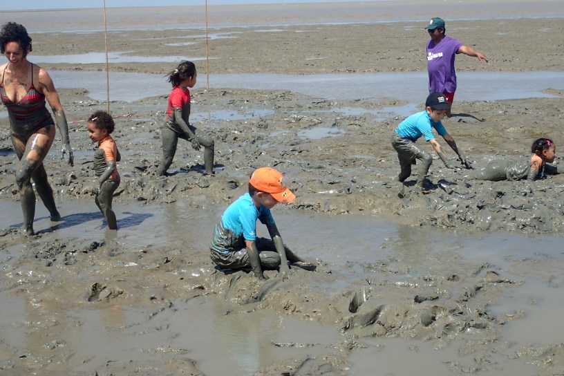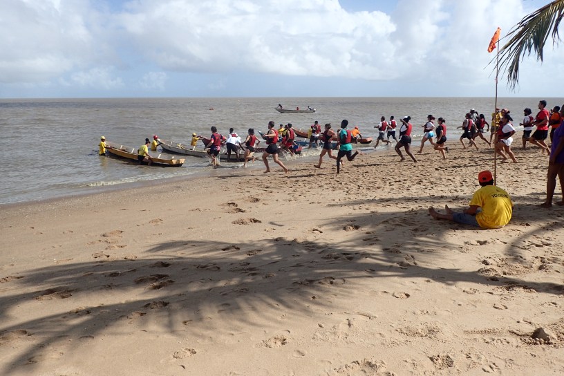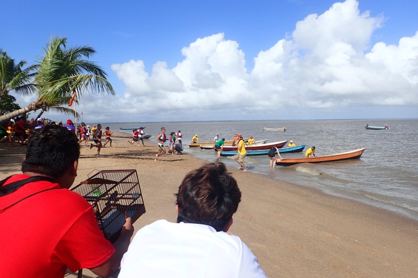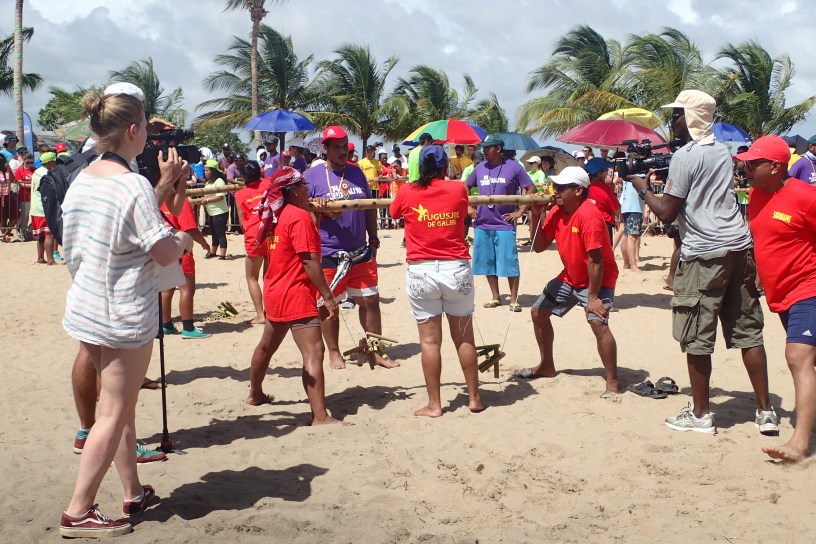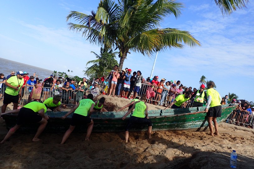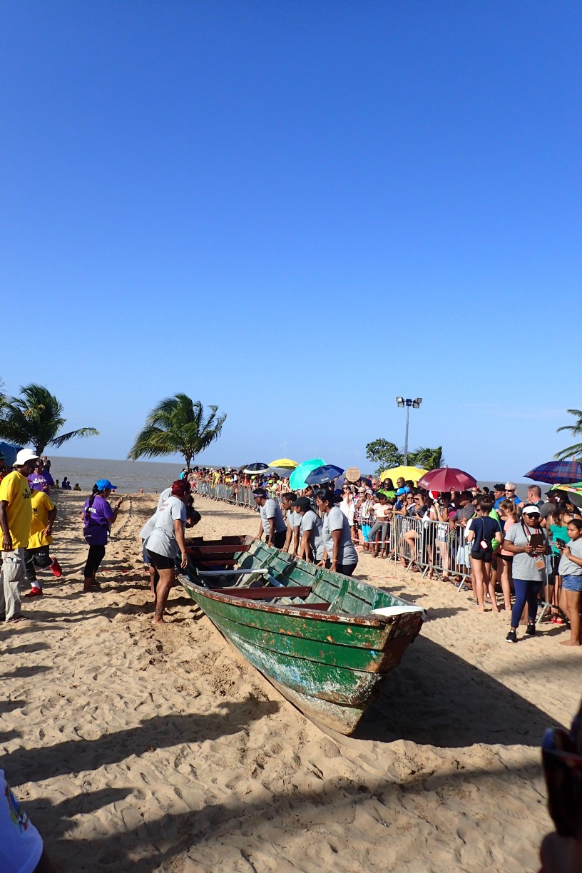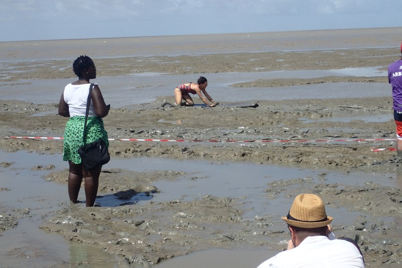 Dimanche matin, réveil matinal. Certains font le choix de passer leur dernière journée au carbet. Les autres repartent sur Awala pour assister aux dernières épreuves. L’organisation ce dimanche est beaucoup plus rythmée. Les épreuves s’enchainent : Course de pirogues, jeu du diable, glisse sur vase. Nous profitons pleinement du site, du bon esprit des épreuves (parité dans chaque équipe et épreuve), du soleil qui ne nous a pas quitté durant ces deux journées. Dernier repas sur la plage face aux