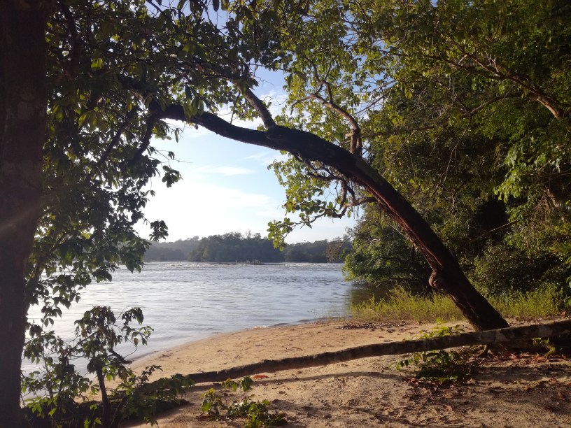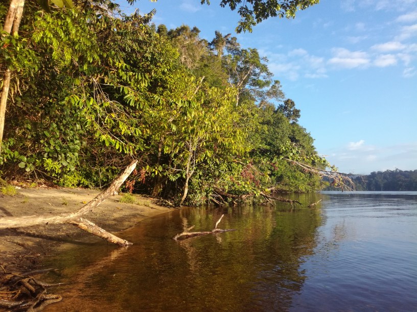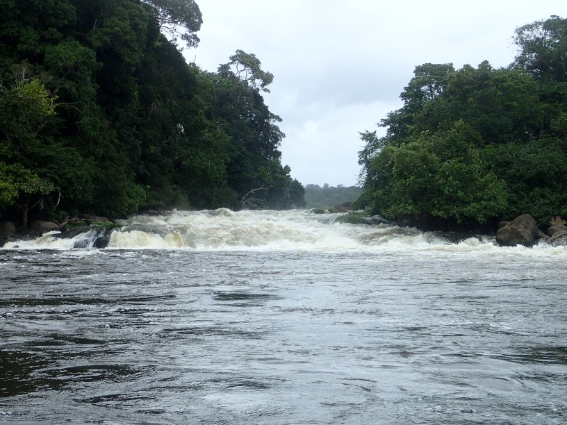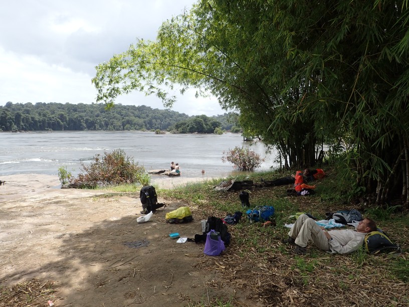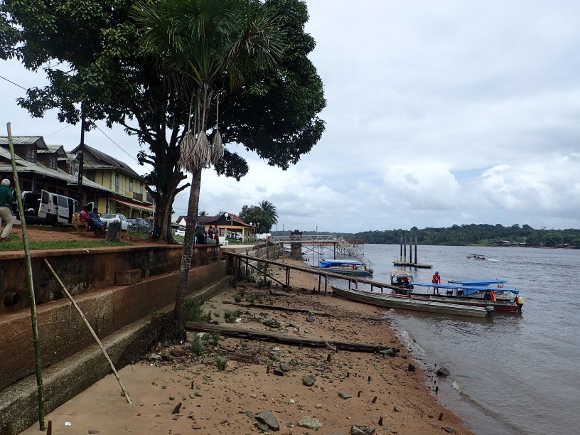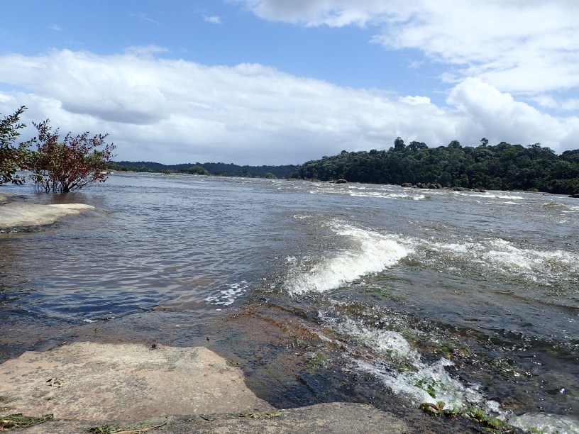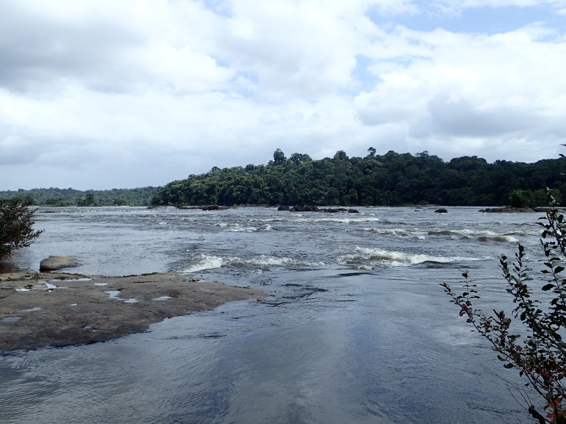 Aux environs de 8 h, Les 10 participants à ce weekend quittent Cayenne pour une route sans encombre jusqu’à Saint Georges. Nous y retrouvons le piroguier Castello fils, Boris, qui nous montre où laisser les voitures, en sécurité chez lui. De retour au ponton piroguier, nous embarquons nos affaires direction saut Maripa. Après 20 minutes de pirogue, un passage sous le pont reliant la France au Brésil et un rapide arrêt pour la dépose d’autres client au débarcadère d’Oiapoque.