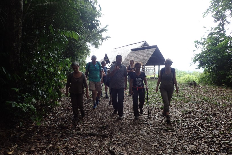 Plusieurs d’entre nous découvrent le superbe point de vue puis nous redescendons en empruntant le sentier botanique. Nous rejoignons nos véhicules afin de gagner le golf du CSG pour notre deuxième étape pédestre d’une petite heure. Il est 13h lorsque nous nous installons pour dejeuner à l’ombre proche du carbet du club qui recevait une compétition ce dimanche…