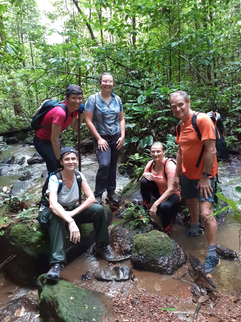 Le retour au carbet se fit dans la joie et la bonne humeur pour raviver le feu et accueillir dignement Isabelle très ponctuelle. Repas pris en commun le soir autour de belles grillades et extinction des feux rapide pour bien régénérer les organismes.