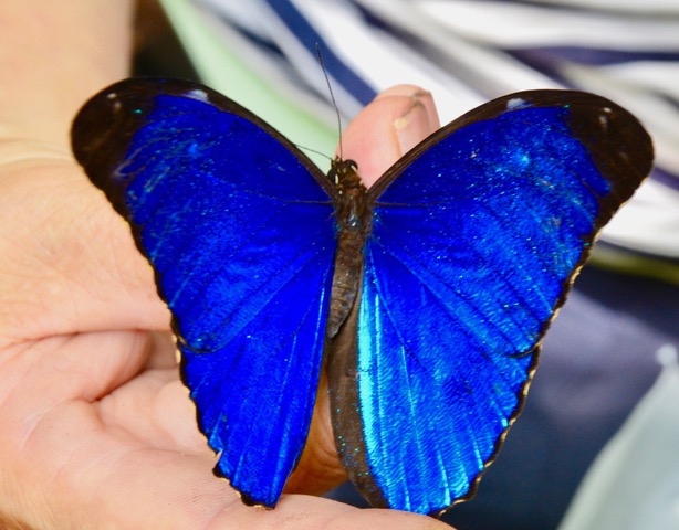 A l’issue de cette petite balade nous nous rendons à l’Amazonia Nature lodge, où chacun s’installe pour la nuit. Après un apéritif et un repas partagé, Yannick le jeune guide du lieu, nous propose de faire une sortie nocturne. C’est sous un ciel étoilé que découvrons toute la vie nocturne des insectes et admirons de beaux spécimens de sauterelles, araignées, papillons…