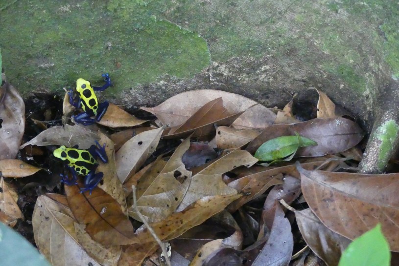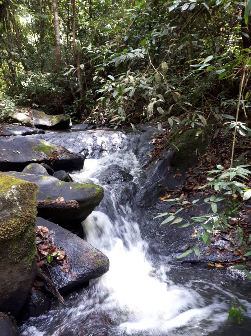 Lundi, nous partons pour notre randonnée boucle de 4 h aller retour (sur le papier) vers les « cascades de la rivière Kumaka » ( fromager en wayana) ou « grande cascade ». Avec Lucie au GPS, nous avançons avec la trace d’il y a 2 ans. Nous rencontrons de nombreux chablis et abattis que nous devons contourner. La randonnée est un peu plus longue que prévue mais avec toute l’expertise de nos nouvelles formées en GPS nous arrivons après quelques passages hors layons aux belles cascades. Nous observons de nombreuses dendrobates. Le retour se fera également en un peu plus de 3h . Après cette randonnée de 18 km nous profitons du beau cadre du village pour une baignade bien méritée !