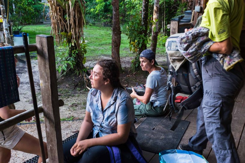 Départ le vendredi après-midi pour certains, le soir pour d’autres, afin de tous se retrouver au carbet de l’ADNG, entre Saint Laurent et Mana. Les voitures arrivèrent les unes après les autres, chacun déballant ses petites affaires et préparant le carbet dodo, le tout chaleureusement accueilli par le directeur de l’ADNG, sa femme et enfants. Puis un coup de téléphone retenti venant de la dernière voiture : crevaison de la voiture de François. Bien heureusement, aucun blessé, les trois accidentés ont pu alerter la police et être ramené en bus à Sinnamary. Là ils furent accueillis par des gendarmes qui s’occupèrent du cas et leur permis de rester sur la zone en attentant de trouver une solution. En parallèle, nous partîmes Salim et moi en direction de Sinnamary pour aller chercher les filles, François, puni, devant rester à l’hôtel pour pouvoir gérer le problème de sa voiture. Nous arrivâmes enfin devant la police de Sinnamary où deux SVF (Sans voiture fixe) nous attendait. Etant d’une grande générosité, nous acceptâmes de les ramener avec nous au carbet. Tardivement arrivé au carbet, nous fûmes accueillis par Lilia et la femme du directeur qui veillaient notre retour.
