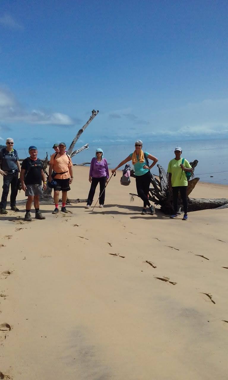 Tout au bout de la plage ; après une petite pause, nous voilà sur le chemin du retour. Nous avons rejoint les véhicules à 12 h 30.