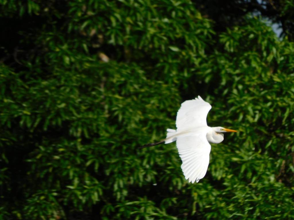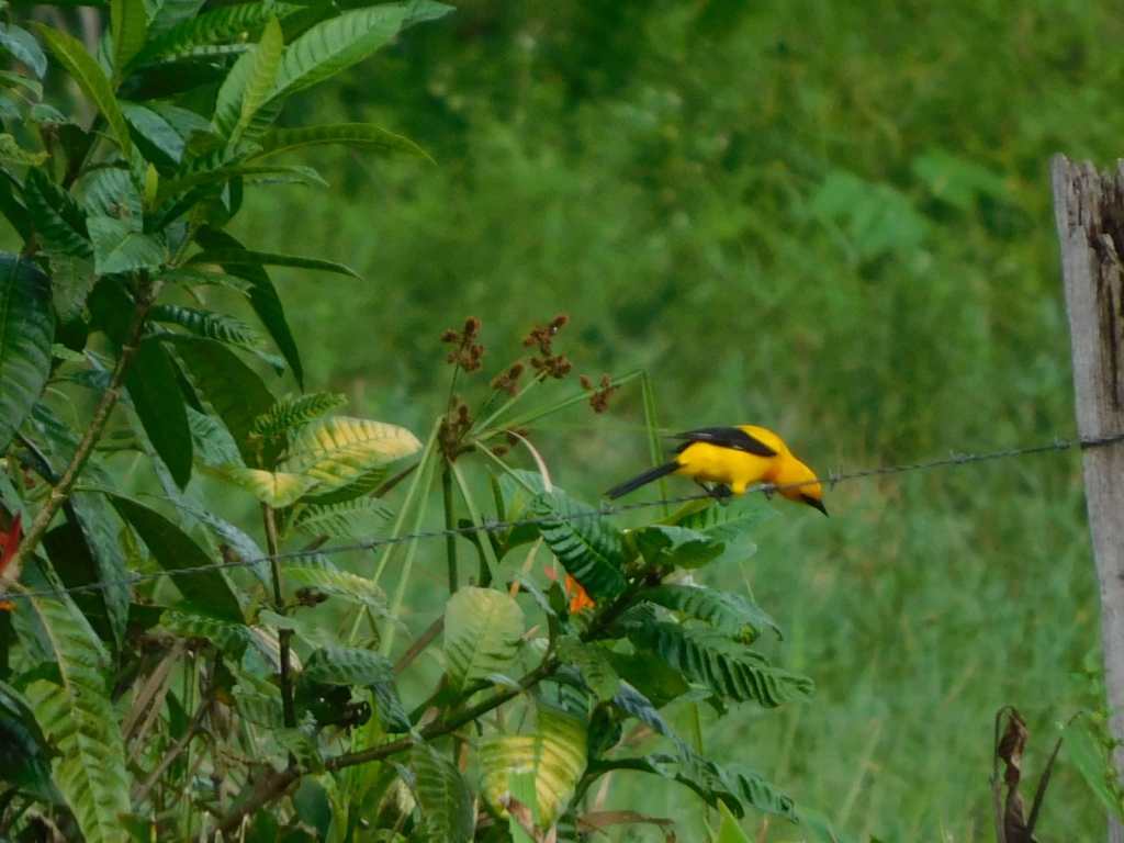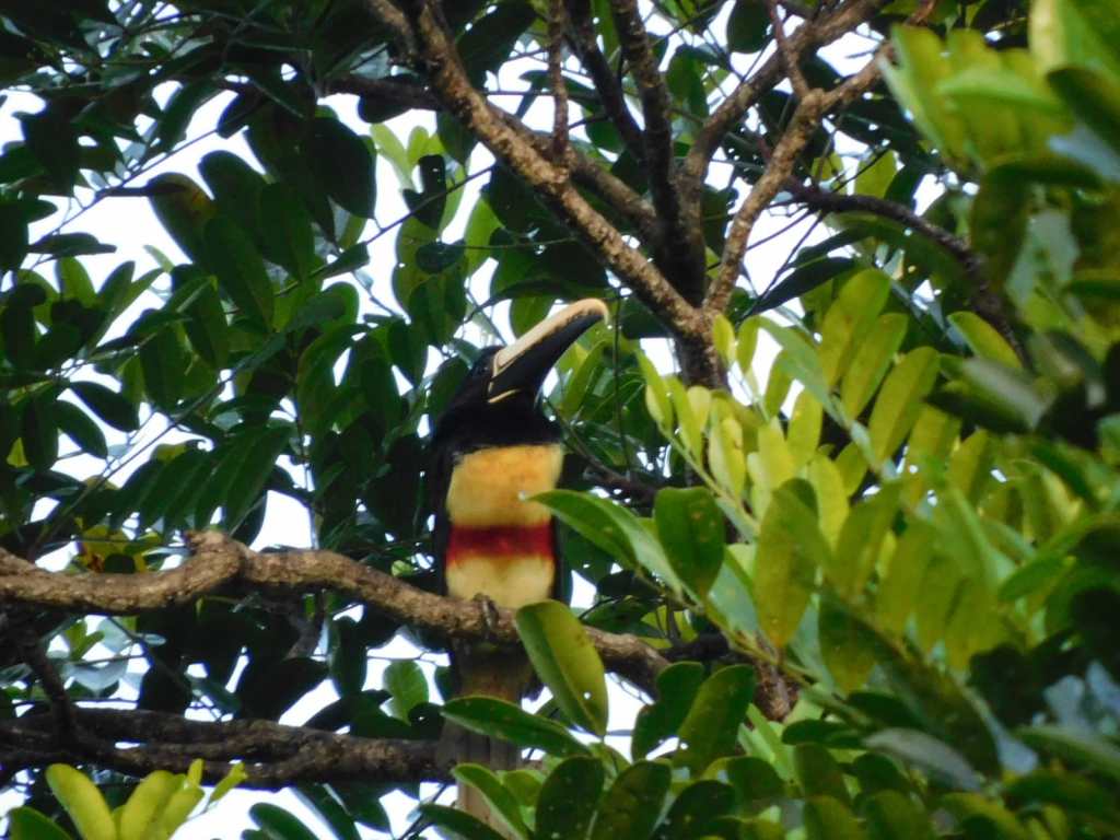 Au départ, les arbres sont hauts. On aperçoit donc essentiellement des oiseaux à la cime des arbres mais pas des moindres: un petit groupe d aracari grigris, et un pic jaune en plein festin. Traversent souvent le ciel des ibis verts et des caciques.