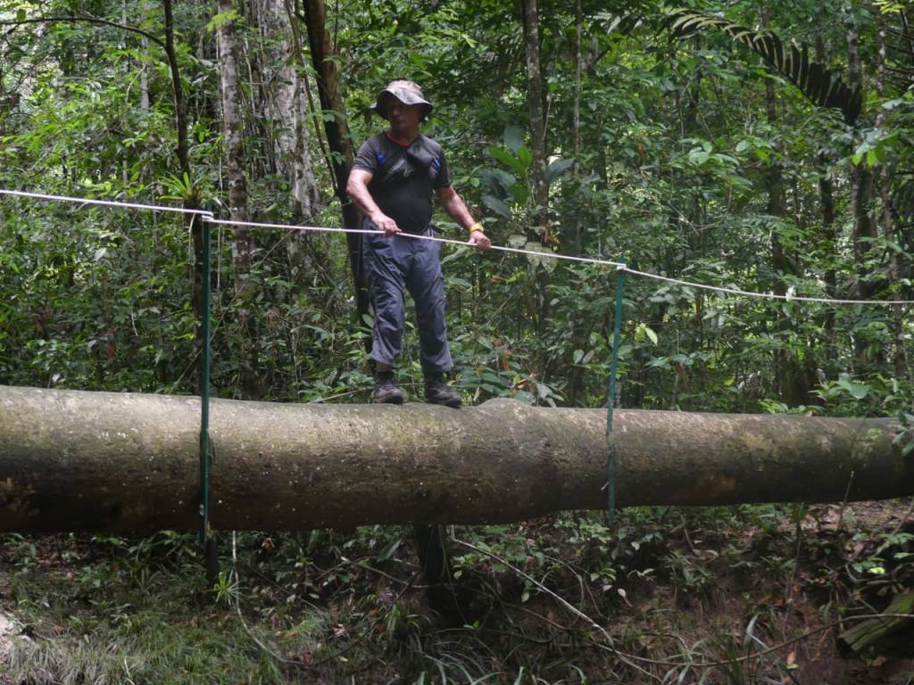 Nous avons pu croiser un petit faucon « buse à tête blanche » , un héron aguami « Onoré rayé » adulte, de petites grenouilles, un petit rongeur que Matthieu s’est régalé à photographier de jolie façon ainsi que les beaux paysages, et toutes nos « prouesses » sur la traversée des troncs et « passerelles » en extrême mauvais état. Merci à toi.