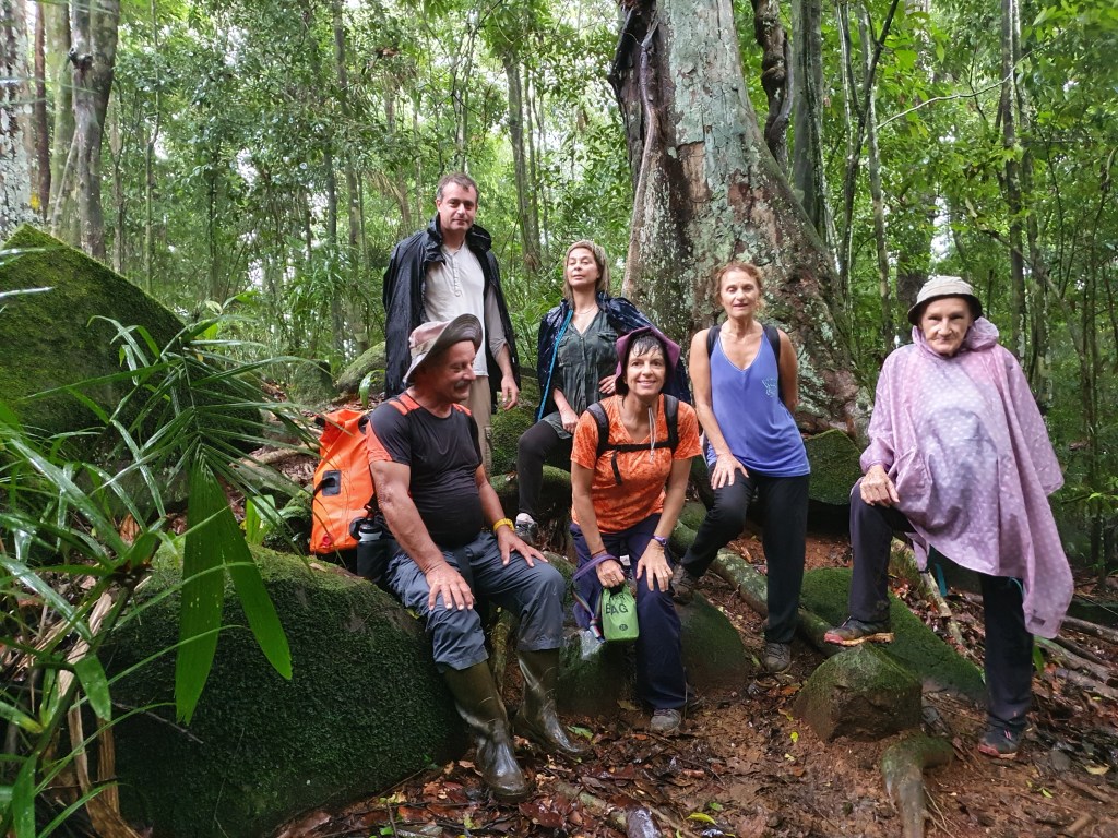 Après un transfert de voiture au point d’arrivée et de départ, à 7h30 nous démarrons notre périple par le sentier de l’IRD qui est plutôt glissant (comme tout le reste du parcours d’ailleurs suite aux grosses pluies de ces derniers jours). La pluie nous rattrape par 3 fois mais sans briser la bonne humeur du groupe et notre envie de marcher ! Un petit souci d’orientation en fin de parcours mais grâce à notre ami GPS qui a bien voulu s’allumer et capter le satellite, nous retrouvons nos voitures qui finalement n’étaient qu’ à …. 150 m de notre position dans la forêt !