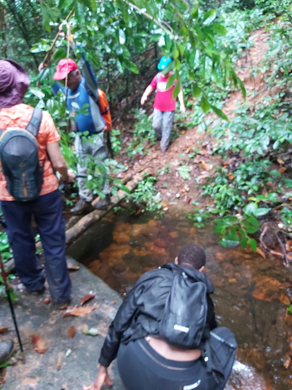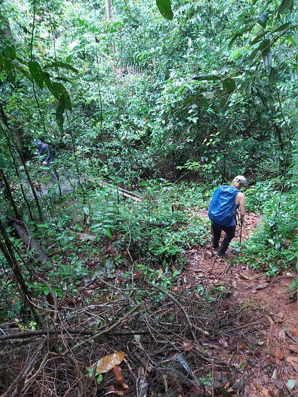 Début de randonnée 8h15. Après quelques montées, descentes et un peu de pluie, nous voilà au Rorota. Une belle montée suivie d’une descente glissante et abrupte vers un petit ruisseau, et quelques doutes sur l’itinéraire (entre trace GPS et sentier bien visible) nous fait faire quelques aller-retours…. Personne n’est perdu ! Juste un peu de temps et de marche en plus.