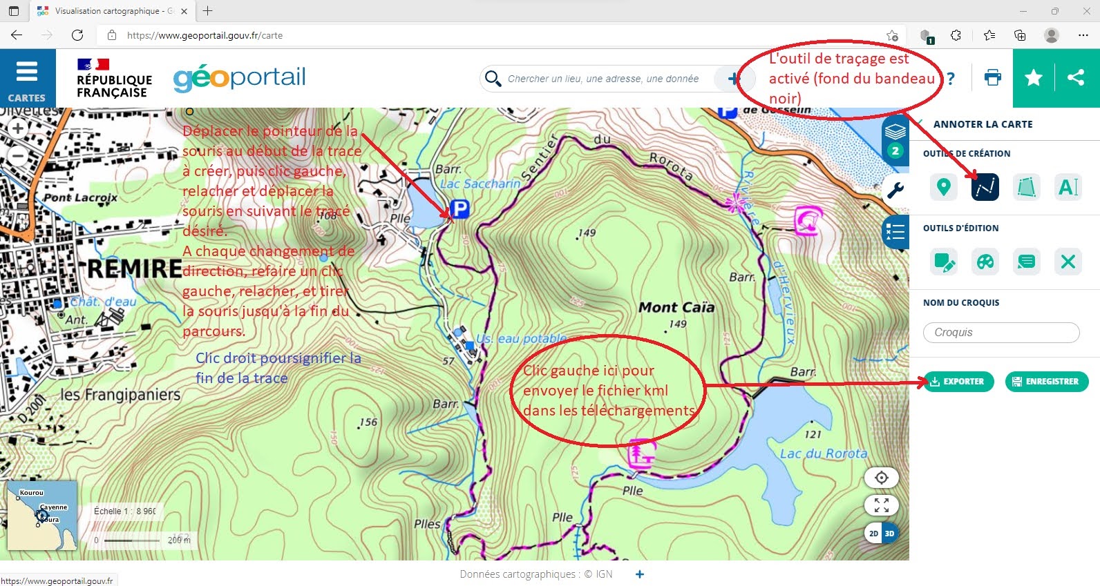 Utilisation de l’outil Géoportail, pour réaliser un parcours de randonnée et le transférer ensuite sur un GPS ou un téléphone portable.