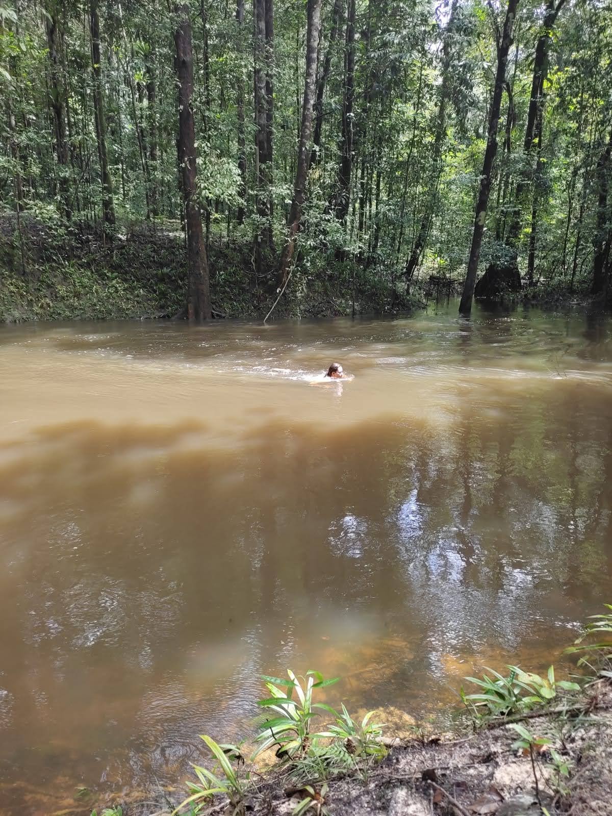 Le lendemain nous avons poussé jusqu’à un carbet d’agrément sur la Tonnegrande à environ 1km de la zone de bivouac et sommes passés par la station de mesure du réseau Vigicrue positionnée sur la Tonnegrande.