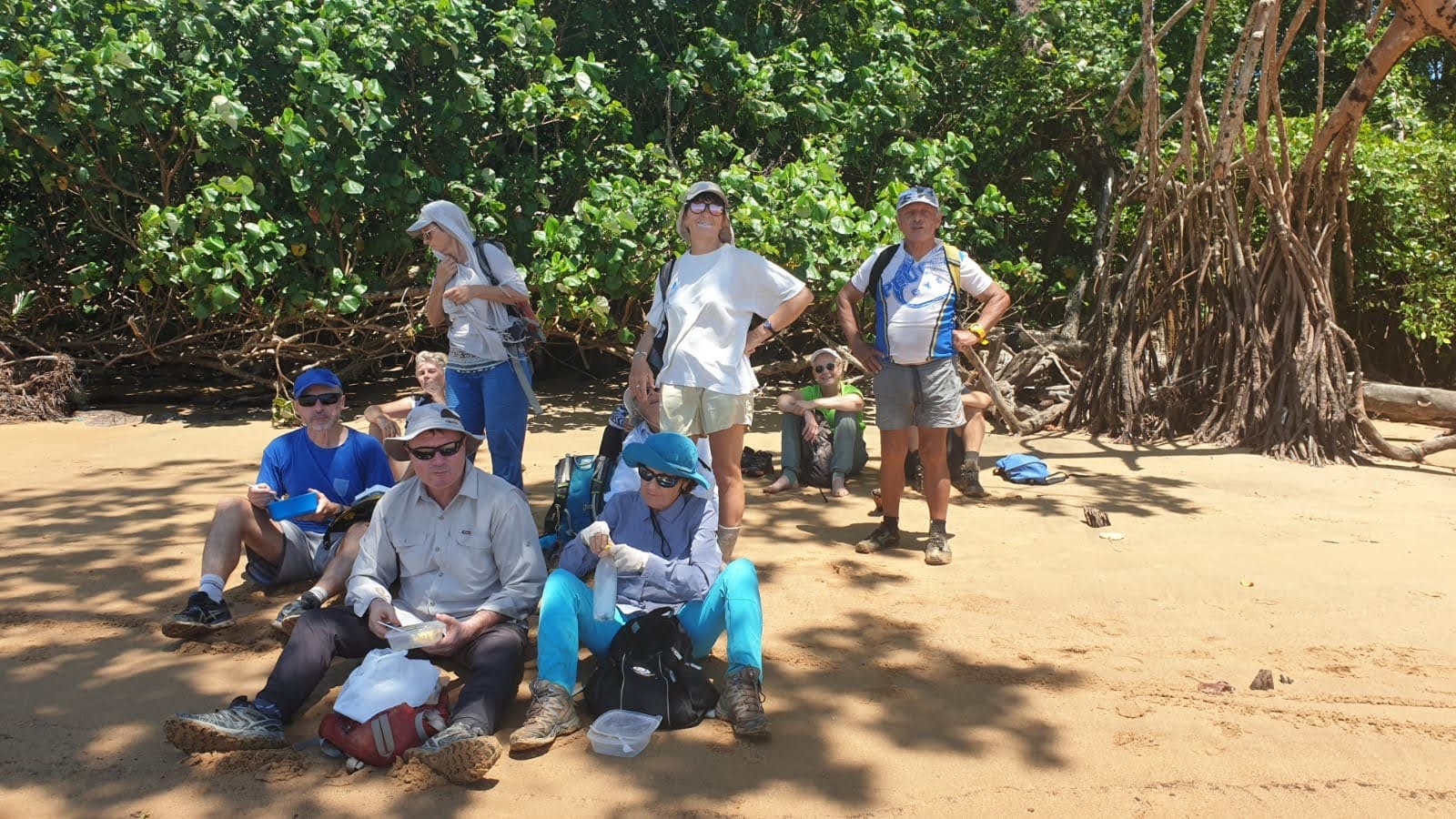 Partis du parking à 10h45, nous avons été jusqu’à la Pointe Liberté tout au bout de la plage ; après une petite pause, nous voilà sur le chemin du retour. Nous avons rejoint les véhicules vers 13 h 50 puis partagé le verre de l’amitié et célébré le départ en retraite et de Guyane de Corinne N.