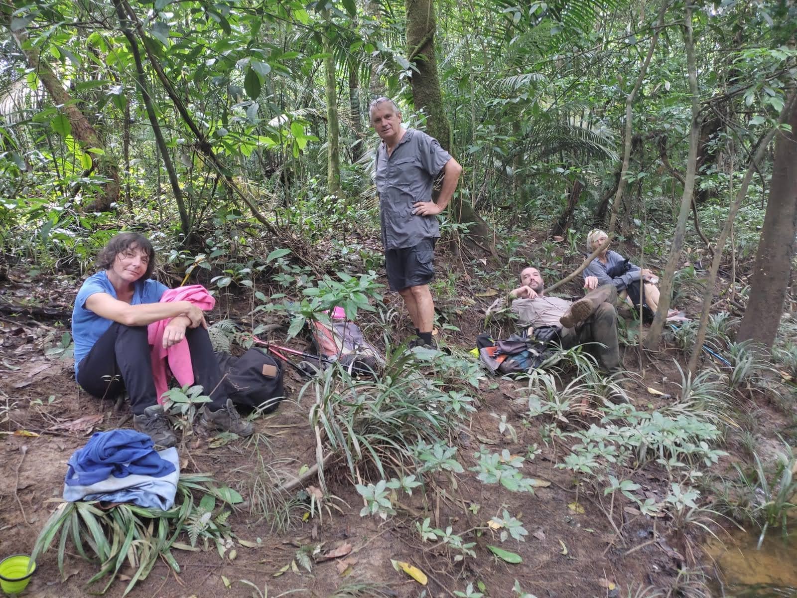 Tour de l’habitation pour constater que les fours sont toujours en place mais que ce n’est pas la saison du cacao, puis pique nique en bas, au bord de la rivière de Montsinéry. Retour par le même chemin : départ 13h et arrivée aux voitures à 16h.