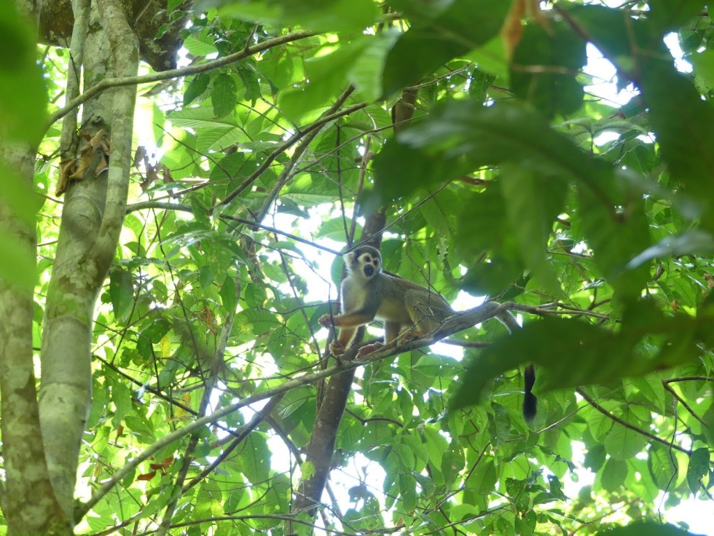 Première sortie officielle de la saison GT 22/23 donc remise en jambes pour certains, découverte de la forêt amazonienne ou de l’association pour d’autres. Donc nous avons pris le temps de ré-admirer les arbres magnifiques, de vérifier que le chant de paypayo est bien sur trois notes. Nous avons vu trois groupes de saïmiris dont deux en pleine dispute : c’était très animé dans les branches et bien proche de nous, à notre grand régal !