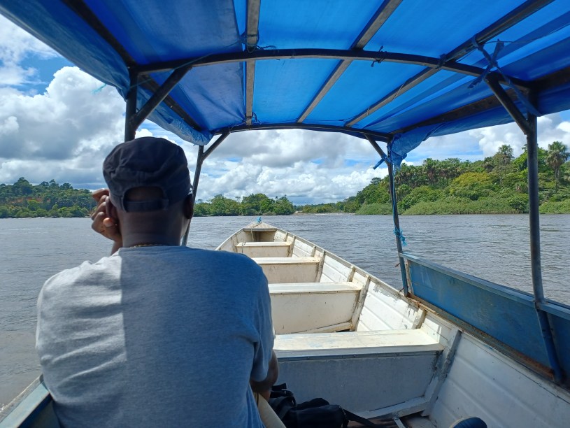 Départ de Remire-Montjoly à 9h en covoiturage. A Saint-Georges, nous sommes attendus par le piroguier qui nous conduit pointe Maripa.