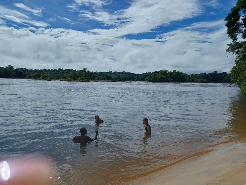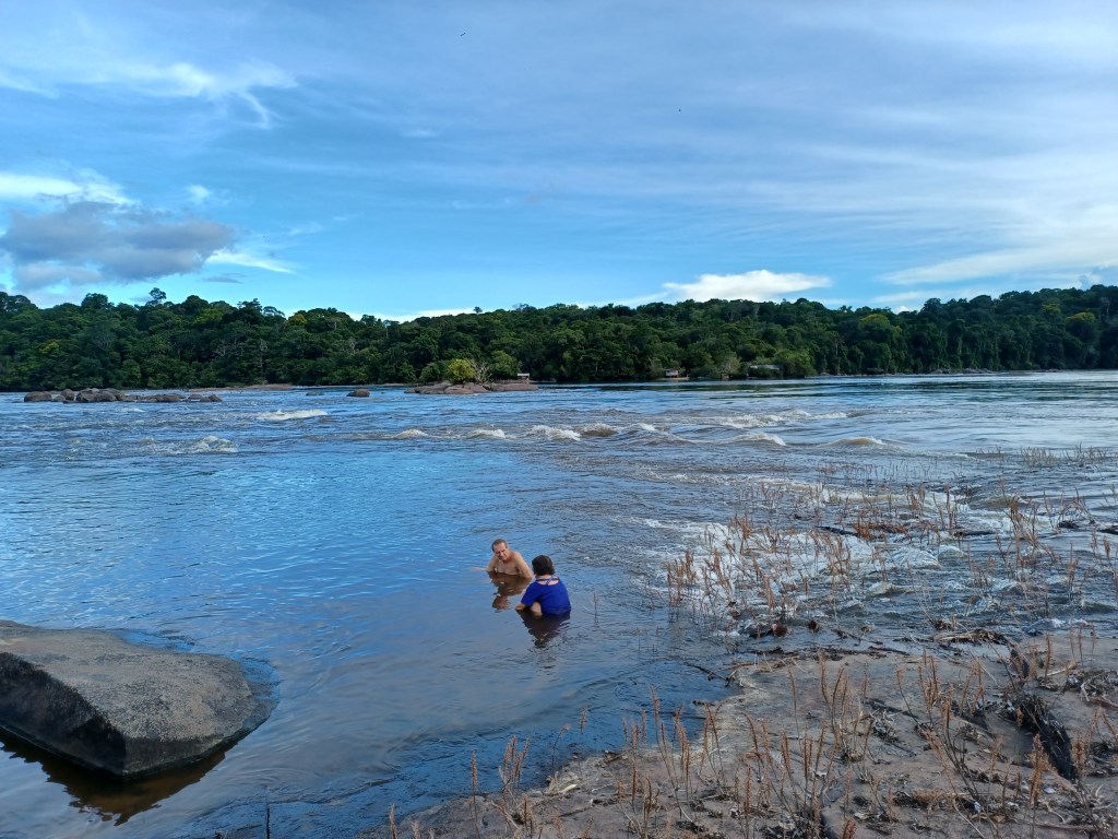 Les choses se compliquent un peu le lendemain lorsque nous entamons la deuxième partie du sentier, celle qui longe le fleuve. Nous devons franchir plusieurs passerelles effondrées ou rendues très glissantes par manque d’entretien. La balade reste néanmoins très agréable et offre des paysages de forêts et de fleuves variés. Il ne reste malheureusement plus grand-chose des carbets installés sur ce sentier et nous nous posons sur une petite plage à côté du saut Anaoua après environ 2h de marche. Le lieu est très agréable et permet une baignade rafraîchissante. Nous faisons ensuite demi-tour.