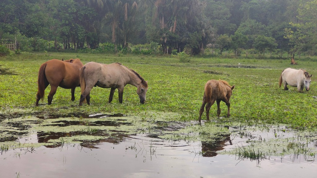 Le rendez-vous était avant le lever du soleil et nous avons pu commencer l’observation des animaux aux premières lueurs ! On a pu observer en masse les aigrettes, les anis, les urubus, les hérons mais aussi des buses, sturnelles militaires, vacher luisant, milan des marais, la talève violacée, les jacanas, les moucheroles, etc…