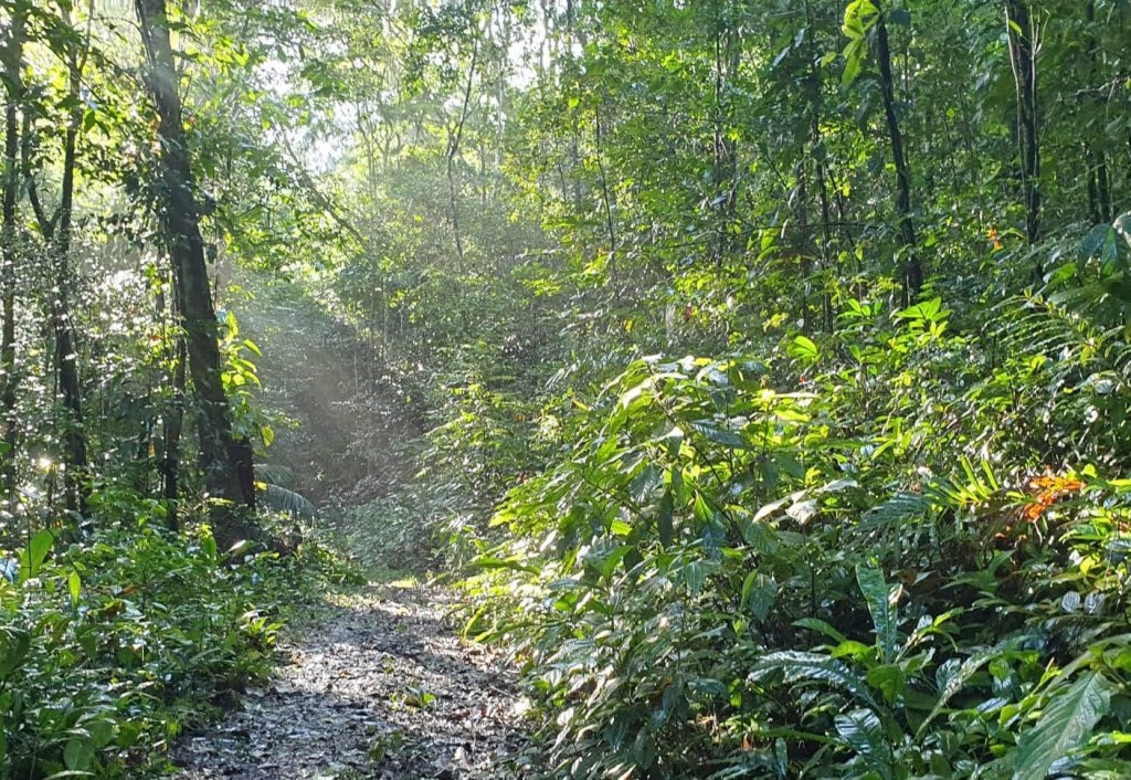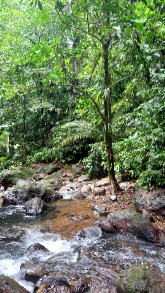 Une horde de cochons bois qui ont traversé la rivière juste après nous pour s’engager sur le layon directement sur nous… pour se séparer au dernier moment (ouf). Ils sont passés de part et d’autre ;