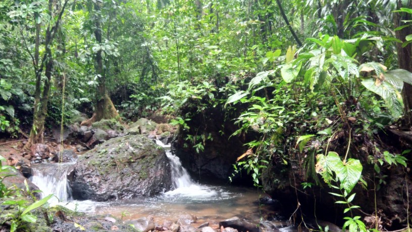 Départ de l’église de Roura et traversée du village pour rejoindre le sentier de la Reine, près de la retenue d’eau. Sentier très agréable et bien balisé par nos adhérents défricheurs de forêt (merci à eux!). Sentier souvent sur les crêtes donc plus au sec et avec moins de chablis que celui du Roy. Layon confortable. Repas pique-nique à la cascade. Visite des vestiges de l’habitation Caroline avant l’arrivée à Favard.