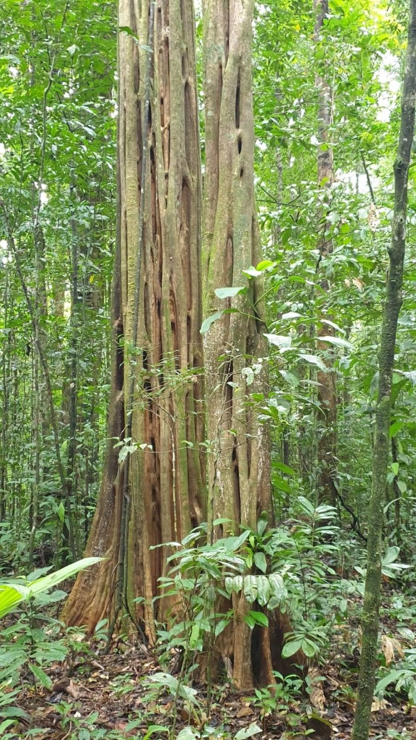 Une horde de cochons bois qui ont traversé la rivière juste après nous pour s’engager sur le layon directement sur nous… pour se séparer au dernier moment (ouf). Ils sont passés de part et d’autre ;