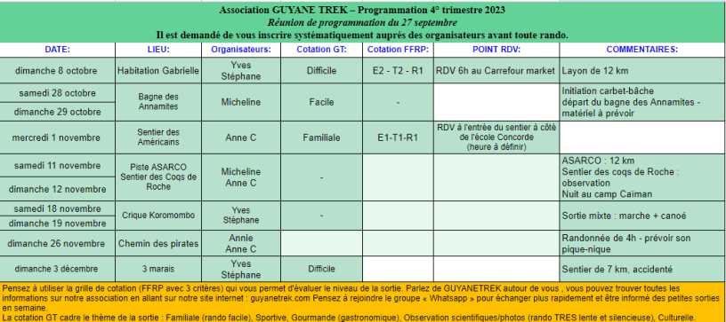 Si vous n’êtes pas encore adhérents Guyanetrek mais que vous voulez le devenir ou vous voulez participer une sortie « découverte » sur une journée : contactez-nous à l’adresse suivante : guyanetrek@gmail.com.