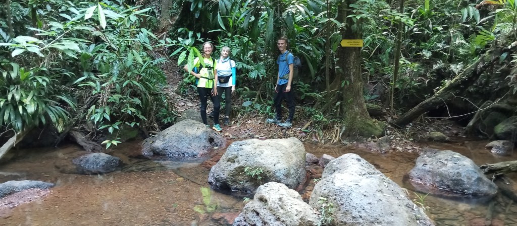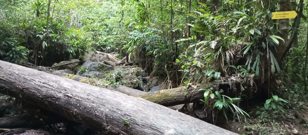 Pour une raison de gain de temps, nous avons divisé le groupe en deux et déposé une voiture à Cacao et une autre à l’intersection de la piste Coralie et du sentier du Molokoï. Nous avons échangé les clés quand nous nous sommes croisés au neuvième kilomètre.