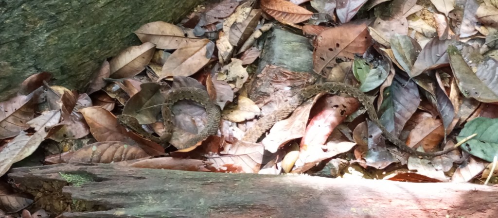 Le groupe de Stéphane a pu entendre des aras et des singes hurleurs et de notre côté, Irène a failli mettre le pied sur un grage.