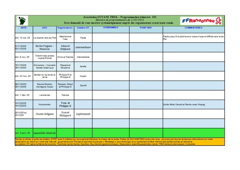 Contacter les organisateurs (voir le tableau envoyé) par mail pour connaitre les modalités d’inscription et d’organisation.